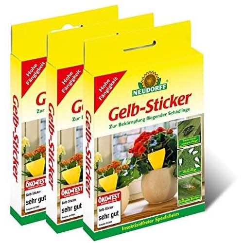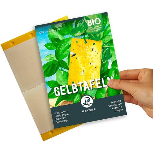 Auch am Ende der Schädlingsbekämpfung lohnt es sich oft, Produkte wie diese Solabiol-Gelbtafeln als Anzeiger für neue Befälle zu nutzen.