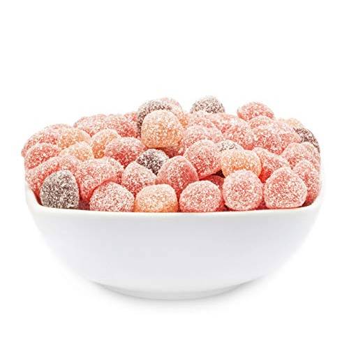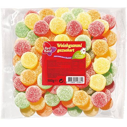 Wir finden teilweise Geleefrüchte, die nur mit Zucker bestreut sind, andere weisen eine saure Mischung als Streu auf.