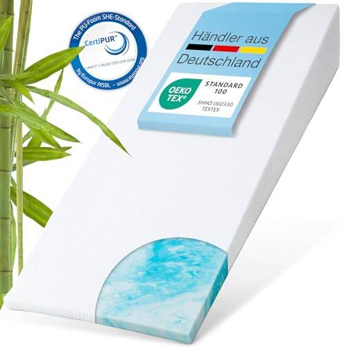 Wir empfehlen Ihnen einen Gel-Topper (etwa 90 x 200 oder 140 x 200 cm) zu wählen, der sich durch ein Raumgewicht von 40 Kilogramm pro Kubikmeter oder darüber auszeichnet. Der beste Gelschaum-Topper überzeugt durch einen Wert von mindestens 45 Kilogramm pro Kubikmeter.