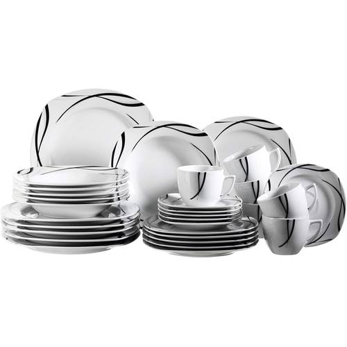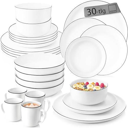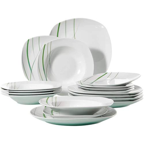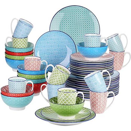 Ein Geschirrset ist meist traditionell weiß. Jedoch kommen auch Modelle mit Farbakzenten immer mehr in Mode. Das können bunte Ränder oder farbige Linien auf der Tellerfläche sein. Hierbei ist der Großteil des Geschirrs dann immer noch weiß. Es gibt allerdings auch komplett einfarbiges Geschirr in verschiedenen Farben. Beliebt sind hierbei dann gedeckte Pastelltöne (übrigens auch für Besteck oder Geschirr zum Kaffee).