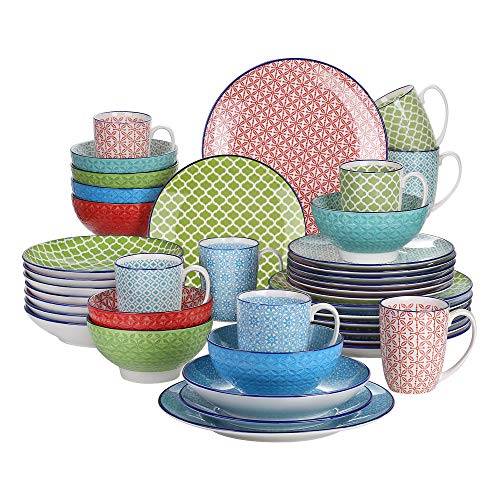 Buntes Geschirr, wie dieses Villa-d’Este-Geschirr-Set »Baita« passt gut zu Einrichtungsstilen, wie Boho oder Urban Jungle, wie wir bemerken.