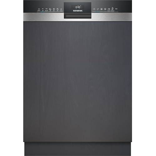 Die Bedienelemente sind bei diesem teilintegrierten Geschirrspüler von Siemens deutlich übersichtlicher als es bei einem vergleichbaren vollintegrierten Modell üblich ist.