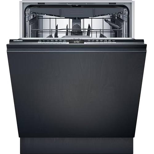 Bei diesem vollintegrierbaren Geschirrspüler von Siemens ist in der Mitte der Bedienelemente ein Display, dass beim Öffnen den Stand des Programms anzeigt, wie es unseres Erachtens typisch ist.