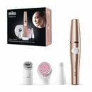 Dieser BRAUN-Epilierer „Face 810“ hat zusätzlich einen Bürstenaufsatz für die Gesichtsreinigung, wie wir feststellen.