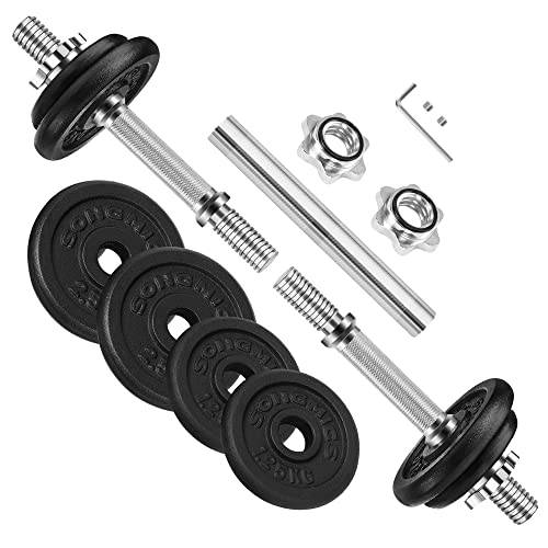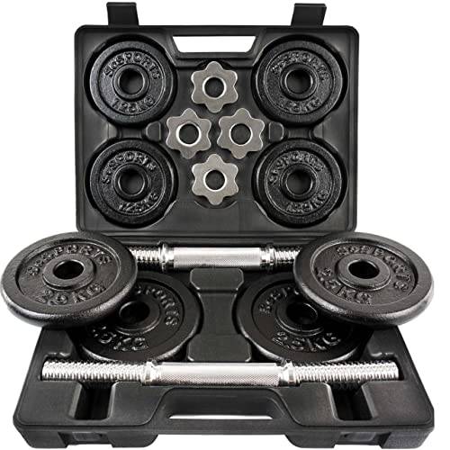 Es bietet sich an, ein Gewichte-Set mit mindestens zwei Hanteln zu wählen. Das ermöglicht mehr Übungen. Außerdem beinhalten Sets oft die Möglichkeit, das Stemmgewicht etwa mit Gewichtsscheiben anzupassen.
