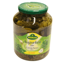 Auf diesem Bild sehen wir Kühne-Gewürzgurken – eine Sorte von mehreren Sorten eingelegter Gurken der Marke.