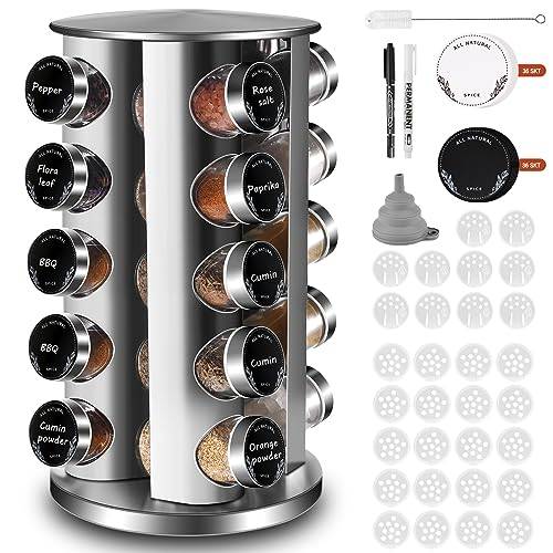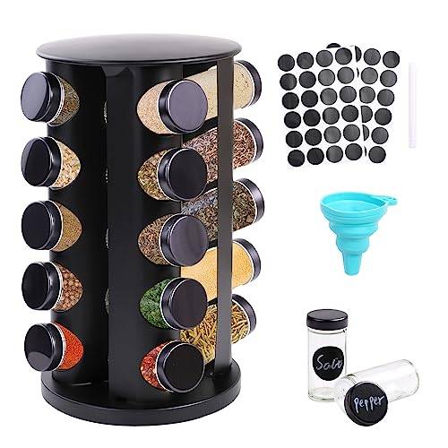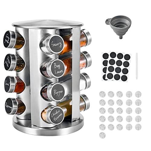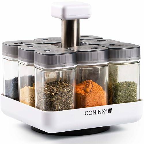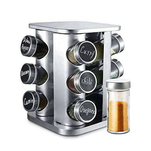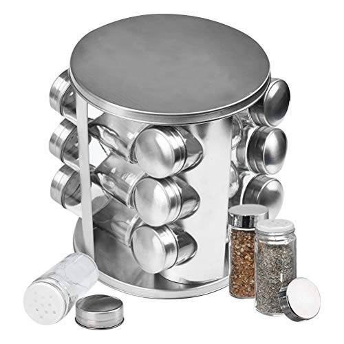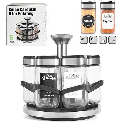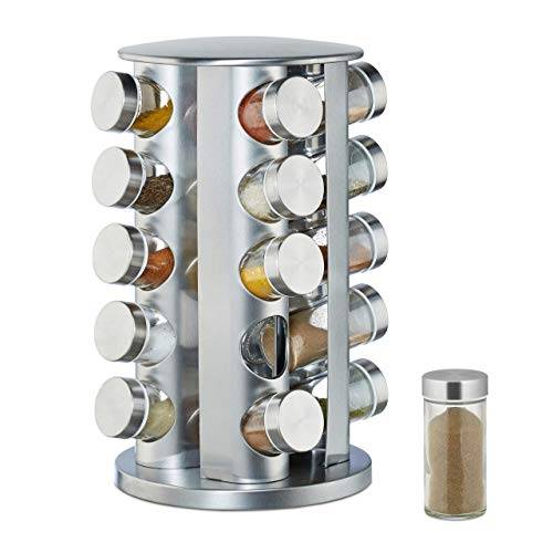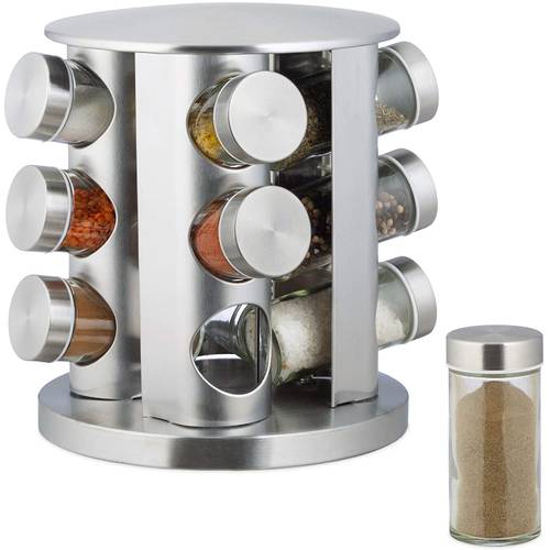 Ein drehbares Gewürzkarussell zeichnet sich im Vergleich zu einem Gewürzregal oder einem -ständer dadurch aus, dass Sie auf die Gewürze Zugriff erhalten, indem Sie es drehen. Es nimmt in Ihrer Küche meistens weniger Platz ein als ein Regal oder Ständer und ermöglicht dennoch einen schnellen Zugriff auf die in der Küche häufig genutzten Gewürze.