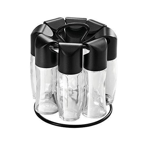 Die meisten Gewürzkarussells sind mit Gläsern ausgestattet, die exakt in die dafür vorgesehenen Öffnungen passen. Dadurch wirkt das Gewürzkarussell einheitlich und dekorativ. Bei den Gläsern handelt es sich meistens um Gewürzstreuer mit Deckel, mit denen Sie die Gewürze einfach dosieren können.
