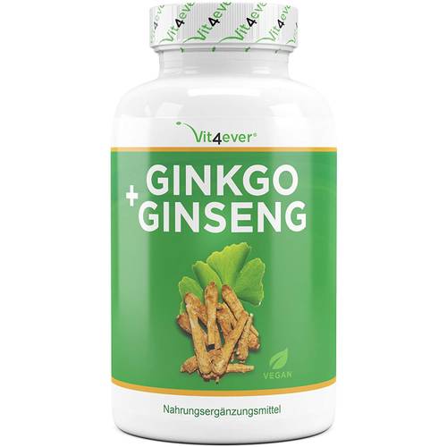 Platz 1 | Vit4ever Ginkgo + Ginseng | ca. 21 € | Ginkgo Biloba Extrakt | Koreanischer Ginseng | 2 Tabletten täglich | ![]() ![]() | |