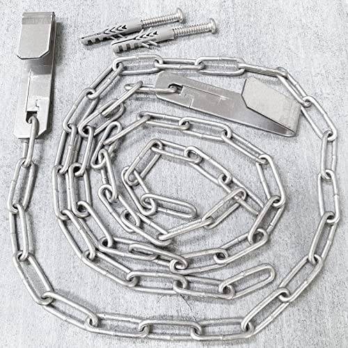 Die Kettenlänge in cm ist in der Regel deutlich höher. Da die Gitterrostsicherung näher am Kellerfenster montiert werden muss, verfügen die meisten Ketten über mindestens 60 cm Länge, manchmal auch 100 cm. Da Sie jedes einzelne Glied zur Befestigung nutzen können, sind Sie bei Modellen wie der Abus-Gitterrostsicherung GS40 oder der Version mit Kette von FeNau sehr frei in der Wahl der Distanz. Ist der Abstand eigentlich zu groß, können Sie auch ohne Weiteres eine andere Kette verwenden. Bei großen Abständen tendiert die Kaufberatung deshalb zur Version mit Kettenverbindung.