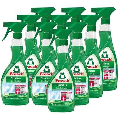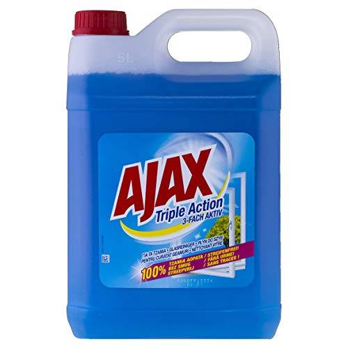 Einige Glasreiniger, wie dieser von Ajax, können auch im 5.0 l-Format erworben werden und halten sich somit extra lang. Bei manchen Herstellern sind neben den 5-Liter-Glasreinigern auch 10-Liter-Kanister erhältlich. Genauso lassen sich direkt 12 Flaschen auf einmal bestellen.