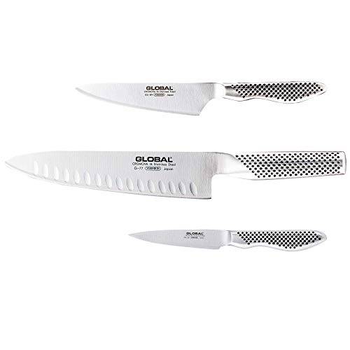 Beliebt sind vor allem die größeren Messer, wie die Global-Santoku-Messer. Oder wählen Sie beispielsweise das Global-Messer G2 aus der Vergleichstabelle, wenn Sie ein universell einsetzbares Kochmesser benötigen, welches für sämtliche Küchenhandgriffe geeignet ist.