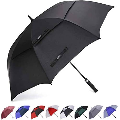 Ein großer Golfschirm sollte somit zumindest einen Durchmesser von 130 cm aufweisen. Zum Vergleich, ein herkömmlicher Regenschirm hat in der Regel einen Durchmesser zwischen 100 und 105 Zentimetern. Sie können aber auch auf einen XXL-Golfschirm mit bis zu 180 cm Durchmesser zurückgreifen. Selbst bei Regen und Wind bleiben Sie mitsamt Ihrer Ausrüstung so garantiert trocken.