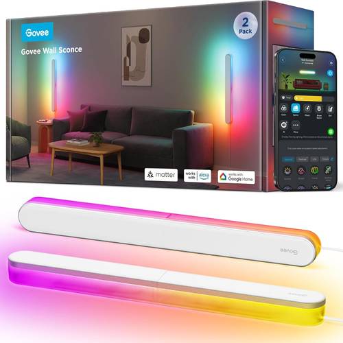 Die Govee-Wandleuchte besteht aus verschiedenen Paneelen, die individuell angeordnet und erweitert werden können. Diese Lampe von Govee kann auch als Deckenlampe verwendet werden. Diverse Tests im Internet loben dieses Produkt für die kreativen Gestaltungsmöglichkeiten.