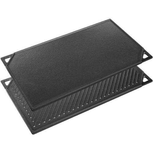 Um die Anwendung einer Grillplatte aus Gusseisen möglichst variabel zu gestalten, statten die meisten Hersteller die Gusseisen-Grillplatte sowohl mit einer glatten als auch mit einer geriffelten Oberfläche aus.