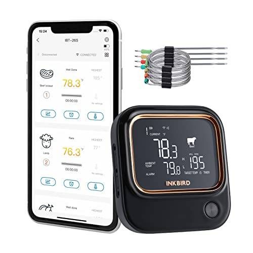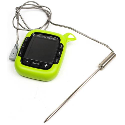 Allzu problematisch ist das in diesem Fall nicht, da die Kabel-Thermometer ja dazu gedacht sind, dauerhaft im Fleisch zu verbleiben. Bei diesem Vorgang kommt es nicht auf die Sekunde an. Umständlich wird es nur, wenn Sie „mal kurz“ bei unterschiedlichen Fleischstücken die Temperatur messen möchten und dafür minutenlang neben dem Grill stehen.