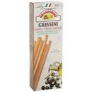 Die originalen Grissini bestehen aus Hartweizenmehl, Wasser, Hefe, Olivenöl und etwas Salz. Nach dem Backen werden sie dann an der Luft getrocknet, damit die Knusprigkeit lange anhält.