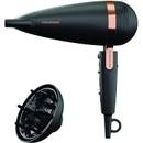 Hier wird uns ein Grundig-Haartrockner HD 6080 B gezeigt, der mit 2200 Watt Power für schnelles, gründliches Trocknen bietet.