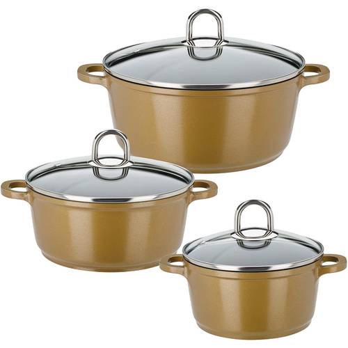 Die Töpfe aus dem GSW 507004 Gourmet-Premium-Color Topfset sind aus Aluguss. Im Vergleich zu Gusseisen sind diese Töpfe sehr leicht und verfügen ebenfalls über eine gute Wärmeverteilung und -speicherung.