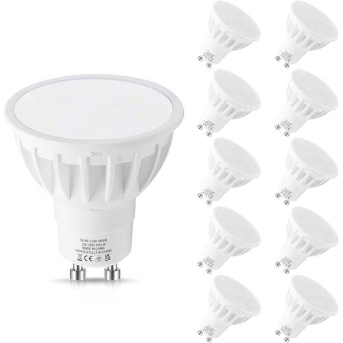 Die Effizienz der LEDs bezieht sich auf die Menge der Lumen, die pro Watt erzeugt werden. Online-Tests von GU10-LEDS in Kaltweiß berichten außerdem von unterschiedlichen Leistungen der Leuchtdioden. LEDs mit GU10-Fassung in Kaltweiß um die 5 W sind relativ gängig, LEDs mit GU10-Sockel in Kaltweiß mit 3 W sind eher selten. Eine lange Brenndauer ist ebenso essenziell, um Ihre Kosten für den Austausch zu minimieren. Auch wenn die Marke Alternativen in Warmweiß anbietet, LEDs mit GU10-Fassung in Kaltweiß von Osram waren nicht verfügbar.