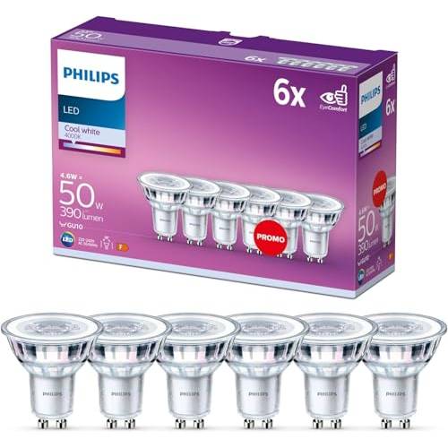 Mit der tatsächlichen Leistung von 4,6 W erzeugt diese Philips-GU10-LED (kaltweiß) laut Hersteller so viel Licht, wie eine konventionelle 50 Watt Glühbirne.