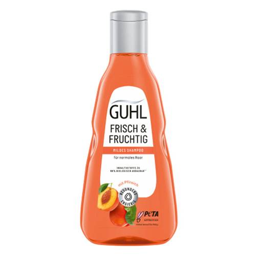 Das Guhl Frisch & Fruchtig Shampoo bereichert die tägliche Haarpflege mit einer vitalisierenden Formel, die normales Haar sanft reinigt und kräftigt. Besonders angetan sind wir von dem fruchtigen Duft des Pfirsichs, der belebend wirkt und dem Haar einen gesunden Glanz verleiht.