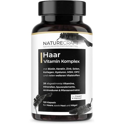 Biotin (Vitamin B7) fördert die Keratinproduktion, das Hauptbestandteil der Haare ist. Zudem soll es Haarausfall vorbeugen. Hochwertige Haar-Vitamin-Präparate enthalten oft über 1.000 µg Biotin pro Kapsel.
