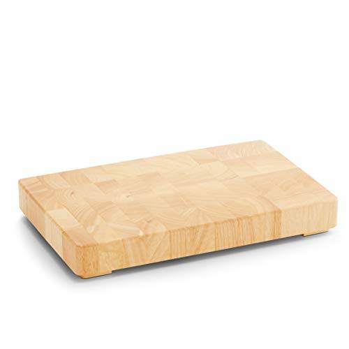 Auch einen Hackblock mit Standfüßen können Sie beidseitig verwenden. Lediglich die kleinen Füße könnten Sie während des Schneidens möglicherweise als störend empfinden.