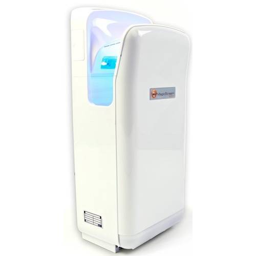 Im Grunde genommen funktionieren alle Händetrockner nach dem gleichen Prinzip. In dem Gehäuse ist ein Motor eingebaut, der durch die manuelle Betätigung eines Knopfes oder eines Sensors am Gerät in Gang gesetzt wird. Nachdem der elektrische Händetrockner die Luft eingezogen hat, wird die Luft durch einen Filter zur Reduzierung von Keimen und Bakterien geleitet und anschließend durch eine Luftkanal wieder hinaus geblasen.
