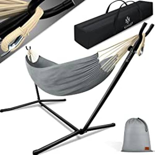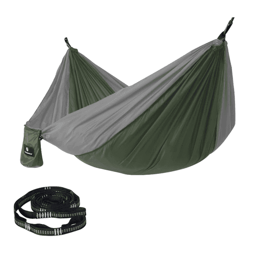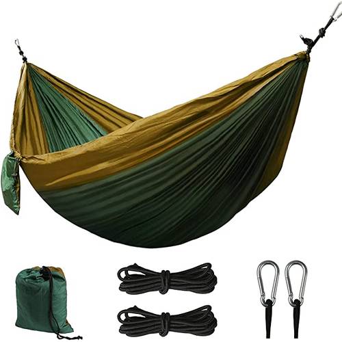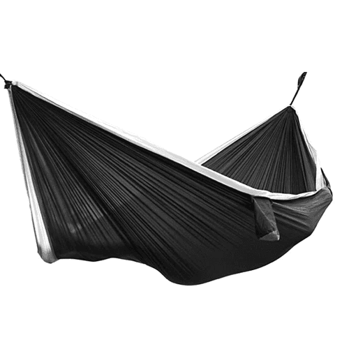 Nylon ist ein besonders robustes Material, das häufig in Reise- und Outdoor-Hängematten verwendet wird. Es ist leicht, kompakt und reißfest, wodurch es sich gut für den Transport eignet. Zudem trocknet es schnell und ist wetterbeständig. Daher finden Sie häufig Camping- oder Trekking-Hängematten aus Nylon. Allerdings fühlt sich Nylon weniger weich an und bietet nicht den Komfort von Baumwolle.