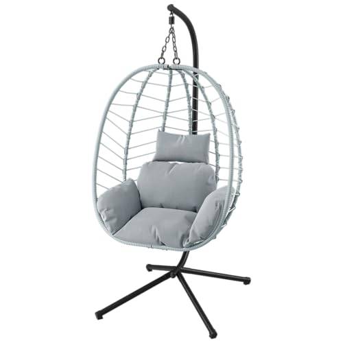 Der Tectake Hängesessel mit Gestell zeichnet sich durch sein vielseitiges Design und hohe Funktionalität aus. Im Vergleich zu anderen Hängesesseln bietet dieses Modell mit seinen dicken, ergonomischen Kissen und der robusten Vierbein-Konstruktion maximalen Komfort und sicheren Stand. Ein besonderes Merkmal ist der voll drehbare Korb, der sich auch zusammenklappen lässt, was insbesondere bei begrenztem Platzangebot oder saisonbedingter Lagerung vorteilhaft ist. Die einfache Höhenverstellbarkeit und die pflegeleichten Materialien machen ihn sowohl für Innenräume als auch für den Außenbereich ideal. Wir empfehlen dieses Produkt für jeden, der eine gemütliche und flexible Entspannungsoase in seinem Zuhause schaffen möchte.