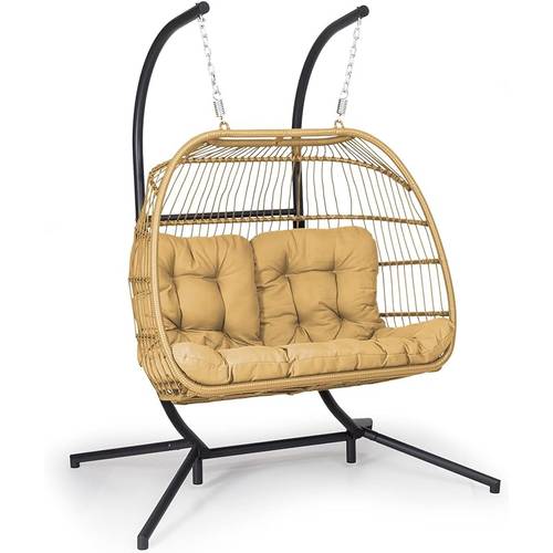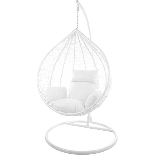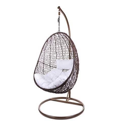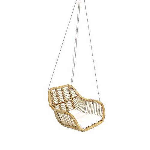 Mit einer Sitzbreite von 89 cm und -tiefe von 80 cm bietet dieser Ecru-Rattan-Hängesessel unseres Erachtens genug Platz, um auch für größere Personen bequem zu sein.