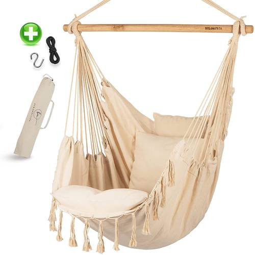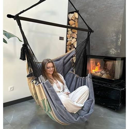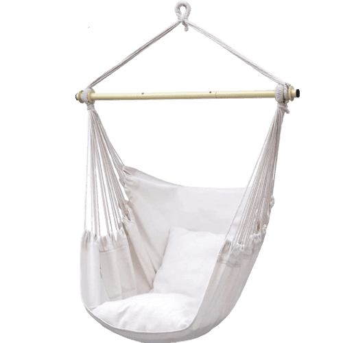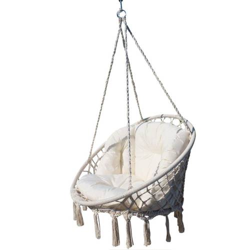 Hängesessel für drinnen nehmen weniger Platz ein als eine Hängematte und integrieren sich gut in Ihre Inneneinrichtung.