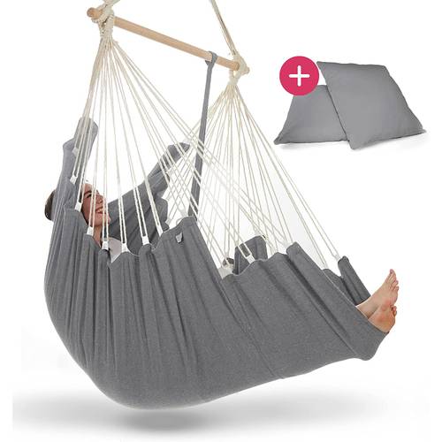 In Sachen Sitzkomfort haben Stoffsessel einen großen Vorteil gegenüber den Korbsesseln. Sie haben keine festen Rück- oder Seitenwände, sondern das weiche Tuch passt sich Ihrem Rücken an. Ist der Stoff-Hängesessel zusätzlich noch mit Sitzkissen ausgestattet, ist Ihnen ein Höchstmaß an Komfort sicher.