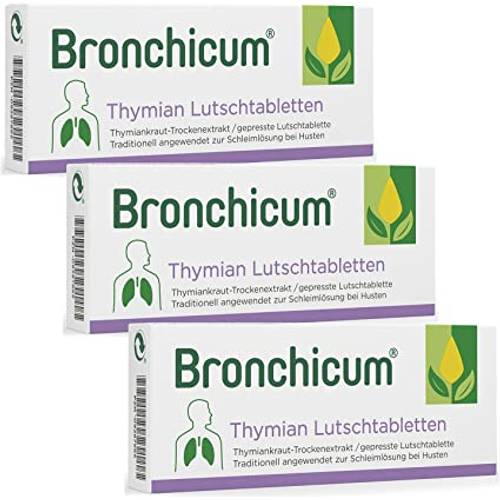 Die Bronchicum Thymian-Lutschtabletten sind geeignet zur Linderung von Husten und zur Unterstützung bei Atemwegserkrankungen. Sie helfen bei der Schleimlösung und beruhigen gereizte Bronchien, was die Beschwerden bei Husten reduzieren kann.