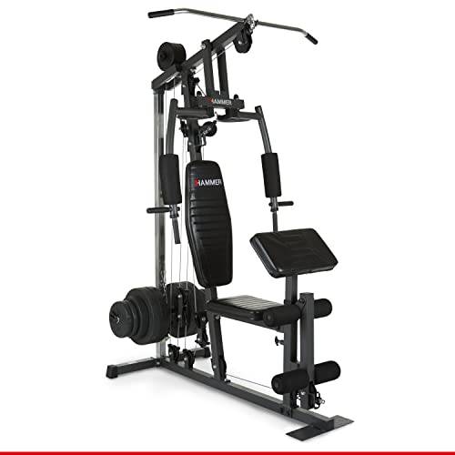 Herkömmliche Kraftstationen, bei denen der Widerstand ganz klassisch mit Gewichten erzeugt wird, wie zum Beispiel bei der Hammer Kraftstation Ferrum TX2, Hammer Ferrum TX3 oder der Hammer Kraftstation California XP, kommen besonders dann für Sie infrage, wenn Ihnen ein geräuschloses Training weniger wichtig ist. Insgesamt sind diese Geräte jedoch auch deutlich schwerer. So kommt die Kraftstation Hammer-Ferrum-TX2 beispielsweise auf ein stolzes Gesamtgewicht von 119 kg.