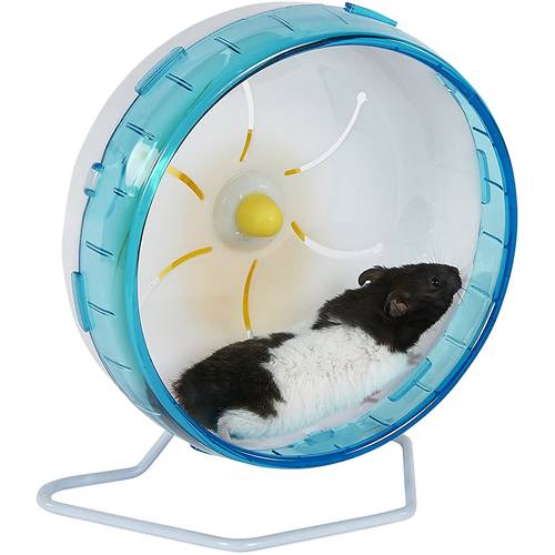 Die Größe von 29 cm Durchmesser dieses Elmato-Hamsterrads und der durchgängige Belag sind gesundheitlich von Vorteil, anders als sehr kleine Räder in Gitterform.