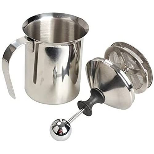 ![]() Hand-Milchaufschäumer aus Edelstahl/Aluminium | robust und langlebig sehr leicht zu reinigen können auf dem Herd erhitzt werden meist etwas schwerer nicht für Induktionsherde geeignet |
