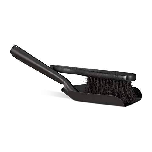 Ein schwarzer Handfeger mit fester Borstenreihe, wie wir ihn hier erkennen, ist ideal für Werkstattböden, da er selbst Metallspäne oder gröberen Dreck aufnehmen kann.