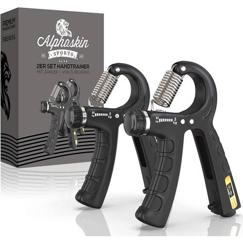 Als Alternative zu einem verstellbaren Handtrainer bieten sich Fingertrainer-Sets an. In Fingertrainer-Sets sind Handtrainer mit unterschiedlichem Widerstand oder auch verschiedene Modelle von Handtrainern für einen unterschiedlichen Trainingsfokus enthalten. Fingertrainer-Sets kaufen Sie unter anderem bei Sport Thieme.