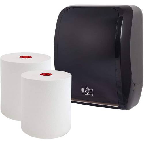 Oftmals sind elektrische Handtuchrollenspender mit einem Sensor versehen. Gerade in Zeiten, in denen Kontakt und die Weitergabe von Keimen vermieden werden soll, ein klarer Vorteil: Der Verbraucher berührt nur das Blatt, welches er verwendet. Solche automatisch betriebenen Handtuchrollenspender gibt es von Tork oder anderen Handtuchrollen-Herstellern wie Lotus enMotion.