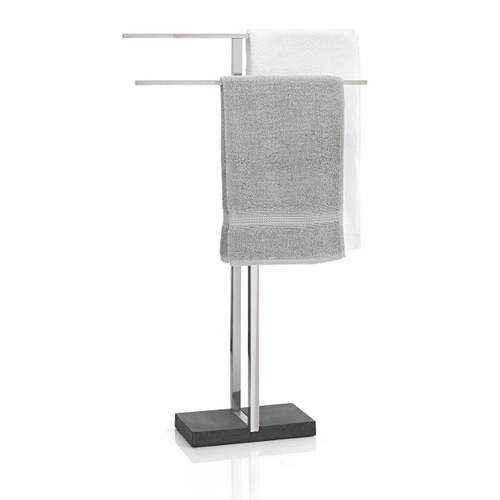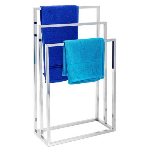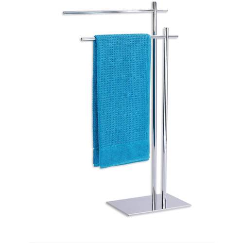 Tipp: Wenn Sie nach jedem Duschgang zügig Sockel und Arme von Ihrem freistehenden Handtuchständer inspizieren und bei Bedarf trocken wischen, bleibt Ihnen zum Zeitpunkt X (jener geplanten, stets aufgeschobenen großen Putzaktion) erspart, mit hartnäckigen Mitteln gegen Kalk und Schmutz vorgehen zu müssen.