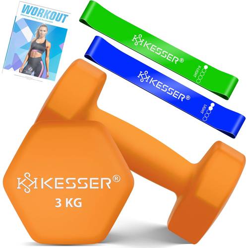 Häufig weisen die Trainingsgeräte eine Neoprenbeschichtung auf. 3-kg-Neopren-Hanteln sind besonders unempfindlich gegenüber Schweiß und schonend zum Boden. Zudem können die Hanteln aufgrund der rutschfesten Materialeigenschaft gut gegriffen werden.