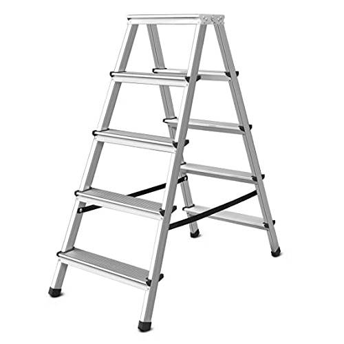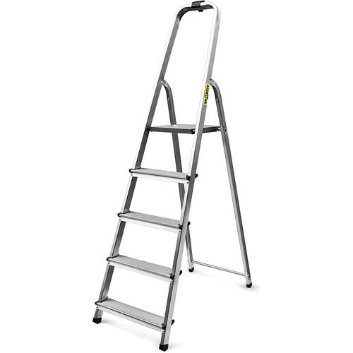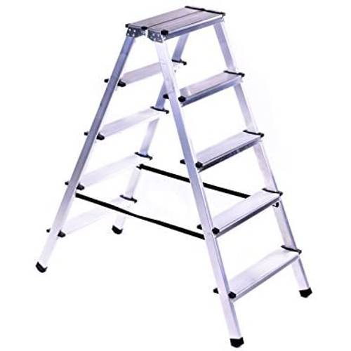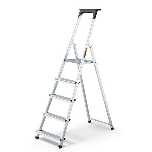 Extrem wichtig ist, dass die Alu-Haushaltsleiter mit 5 Stufen nicht nur aus Sprossen besteht, sondern aus richtigen Stufen. Diese sollten bei einer Stufenleiter mit 5 Stufen idealerweise auch profiliert sein, um die Rutschgefahr zu verringern. Zusätzlich zur Profilierung können ebenso extrabreite Stufen für mehr Sicherheit sorgen. Somit haben auch Personen mit etwas größeren Füßen einen guten Halt. Da eine Klappleiter mit 5 Stufen nicht die niedrigste ist und man schon einigermaßen weit oben steht, gibt Ihnen ein hoher Sicherheitsbügel eine zusätzliche Stabilität, die Sie dann nicht nur in den Beinen, sondern auch in den Händen zu spüren bekommen.