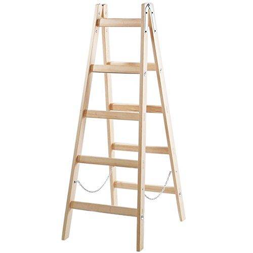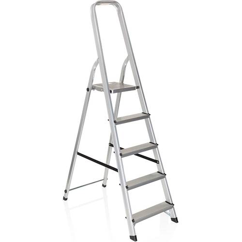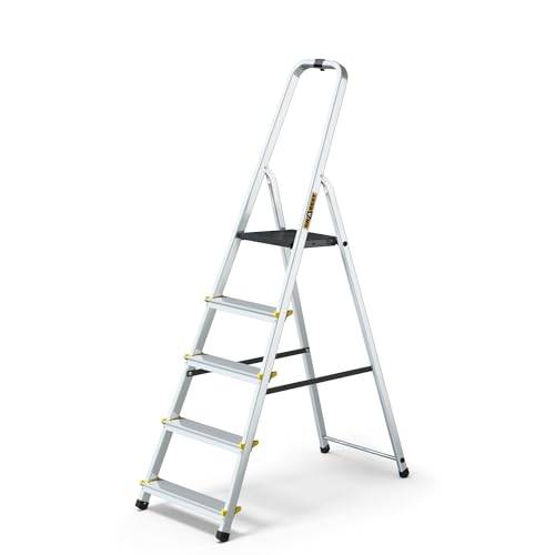 Wenn Sie eine Haushaltsleiter mit 5 Stufen kaufen, können Sie eine 5-Stufen-Alu-Leiter mit einer Höhe von ca. 160 cm bis ca. 185 cm erwarten. Alle Leitern mit einer kleineren Höhe haben vermutlich weniger Stufen oder eine ungewöhnliche Tritthöhe.