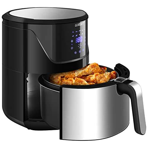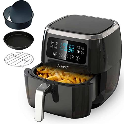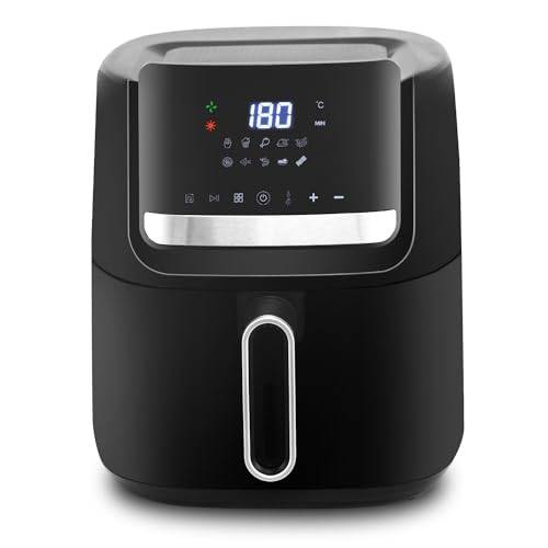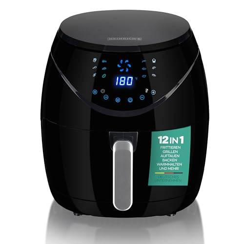 Auch die DMS-Heißluftfritteuse mit 7 Litern Fassungsvermögen kann mit 1.800 Watt gut mithalten und erreicht ebenfalls bis zu 200 Grad. Die beste Heißluftfritteuse mit 7 Litern besitzt zudem einen Timer, der zwischen 1 und 60 Minuten eingestellt werden kann, damit Ihnen kein Essen versehentlich verbrennt.