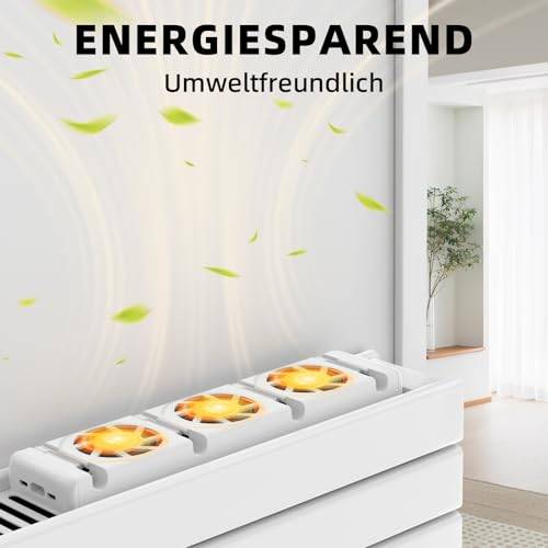 Heizkörper-Ventilatoren unterstützen die Wärmeabgabe, indem sie die natürliche Konvektion verstärken und warme Luft nicht nur nach oben, sondern deutlich schneller und gleichmäßig im Raum verteilen. Das kann den subjektiven Wärmeeindruck verbessern und die vorhandene Heizleistung effizienter nutzbar machen.