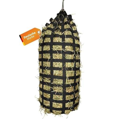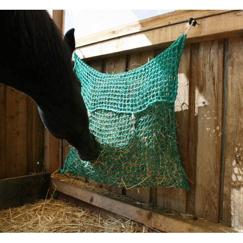 Ein Heunetz sollte besonders engmaschig sein. Denn sind die Maschen des Heunetzes zu groß, lässt sich aus dem Netz zu viel Raufutter auf einmal herauszupfen. Dadurch verliert das Heunetz jedoch seinen Sinn. Große Maschen sind außerdem gefährlich, weil sich die Tiere darin mit den Hufeisen verfangen können.