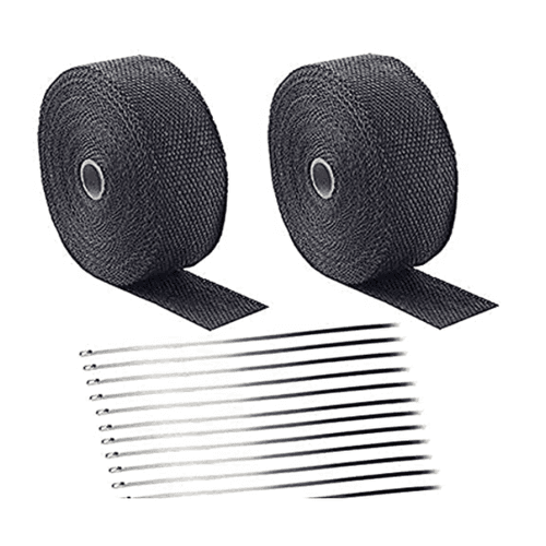 Die meisten Hitzeschutzbänder sind 50 mm breit. Die Bänder sind breit genug, um zügig eine Fläche abzudecken, und trotzdem flexibel genug für Krümmer, Auspuffrohre oder Downpipes. Wenn Sie zum Beispiel den Motorradkrümmer oder die Auspuffanlage eines Kleinwagens umwickeln möchte, liegen Sie mit einer Breite von 50 mm in der Regel richtig.