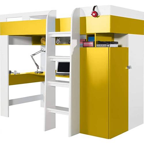 Bei vielen Hochbetten mit integriertem Schreibtisch befindet sich dieser direkt unter der Liegefläche. Bei einigen Modellen ist er an das Bett herangebaut. Das Bett nimmt so mehr Platz ein, unter der Liegefläche entsteht jedoch zusätzlicher Stauraum. Andere Modelle haben einen Schreibtisch auf Rollen, der bei Bedarf aus der Konstruktion hinausgezogen und in einigen Fällen auch völlig frei stehend verwendet werden kann.